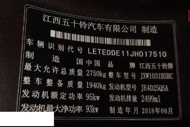 初次登记日期 2018-10-10 车辆名称 五十铃