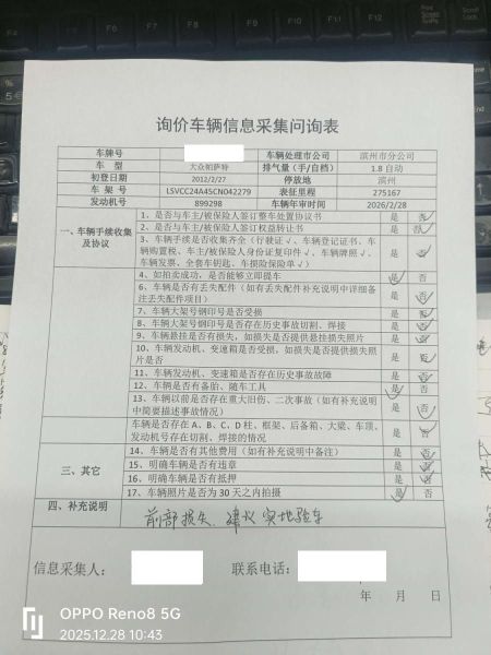 拍卖编号 N202512290551 事故类型 碰撞车