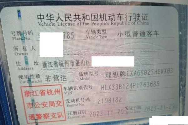 车牌号 浙****** 品牌 理想