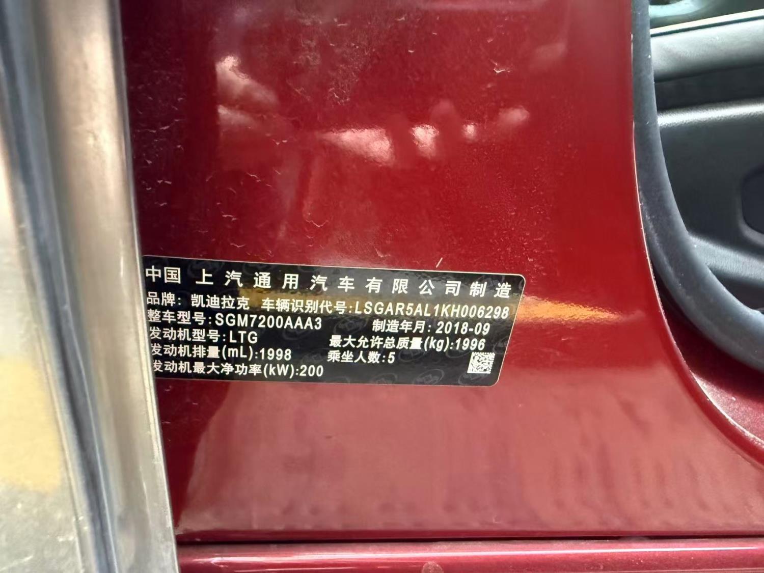 初次登记日期 2018-12-17 车辆名称 凯迪拉克ATS-L