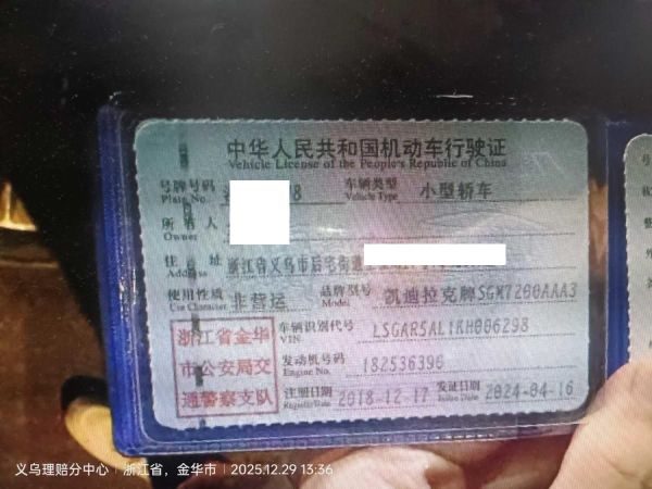 车辆归属地 浙江金华市 车辆停放仓库 浙江省义乌市义乌市