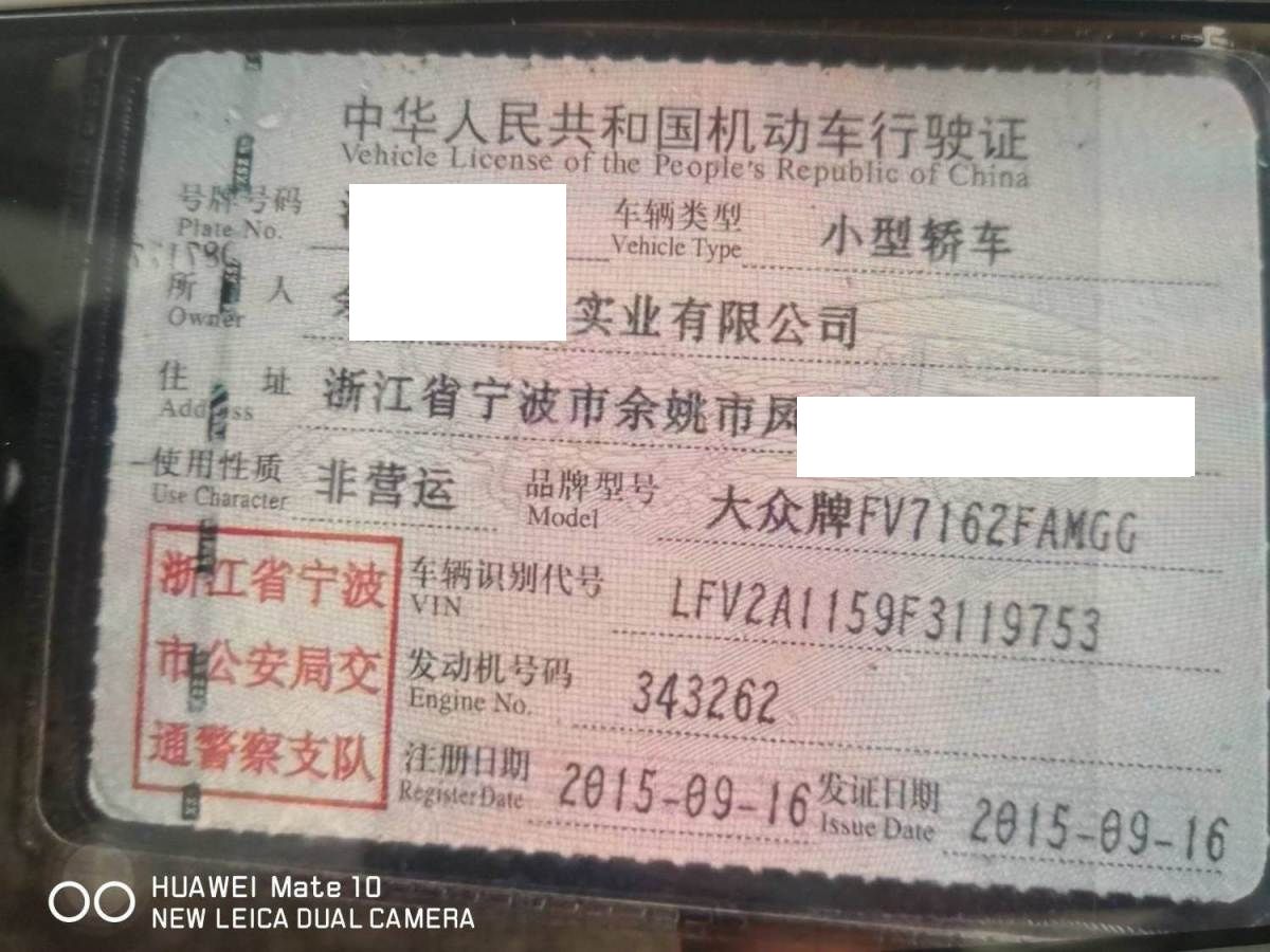 初次登记日期 2015-09-16 车辆名称 大众 宝来