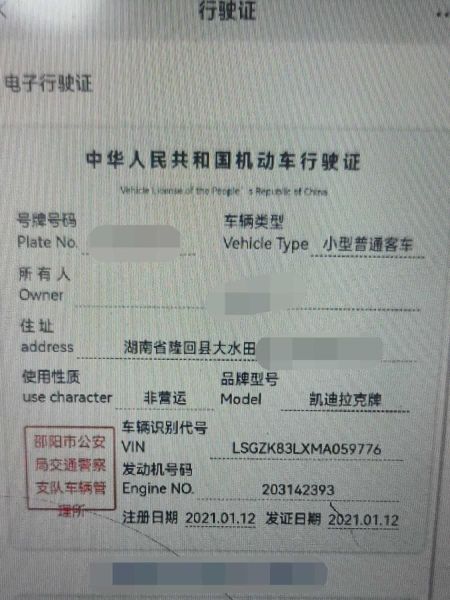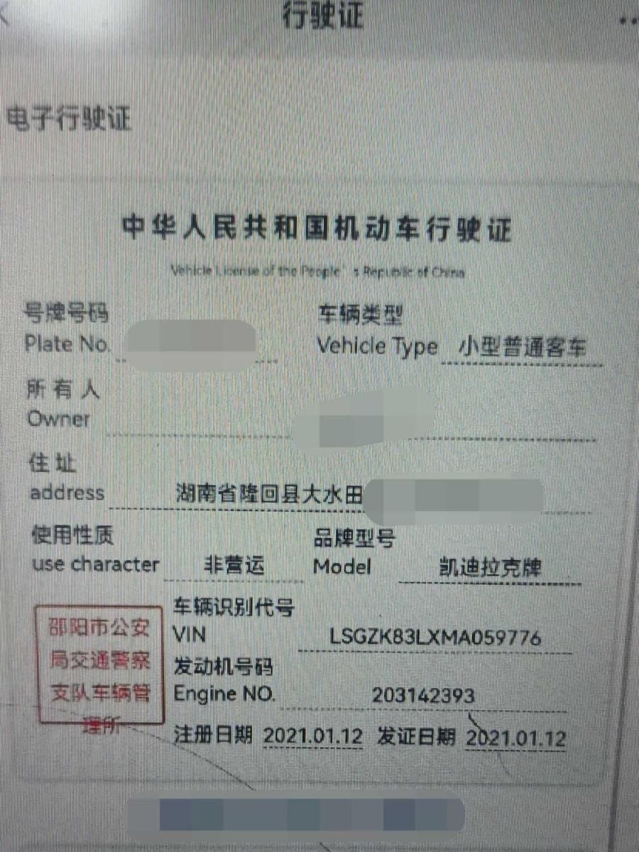 初次登记日期 2021-01-12 车辆名称 凯迪拉克