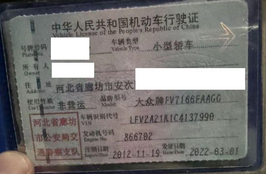 车辆归属地 北省廊坊市廊 车辆停放仓库 河北省廊坊市廊坊市