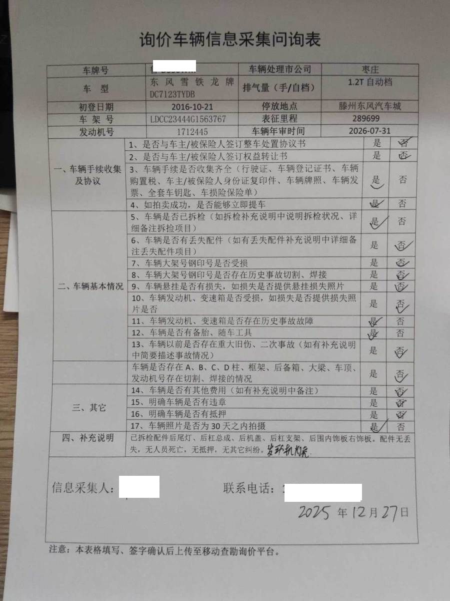 拍卖编号 N202512290883 事故类型 碰撞车
