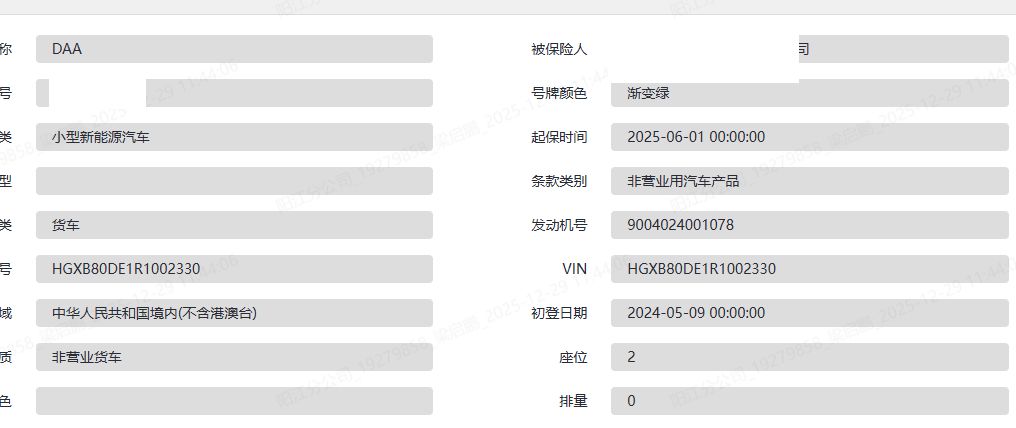 车架号是否受损 未知 使用性质 非营运