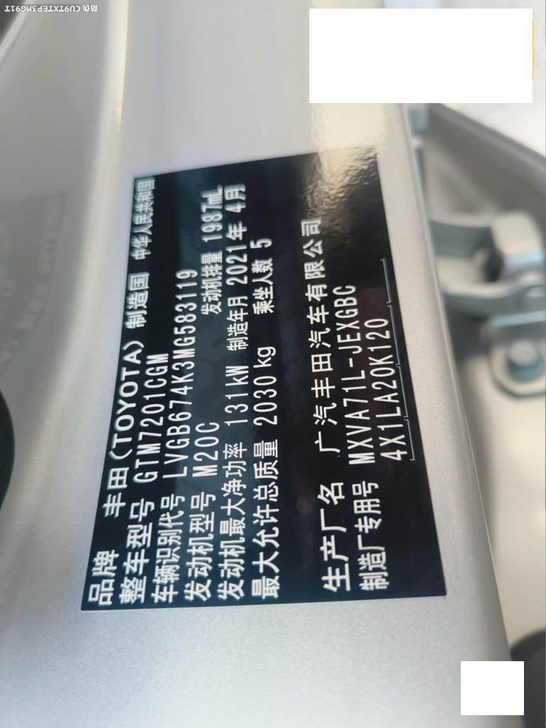 初次登记日期 2021-05-20 车辆名称 丰田 凯美瑞