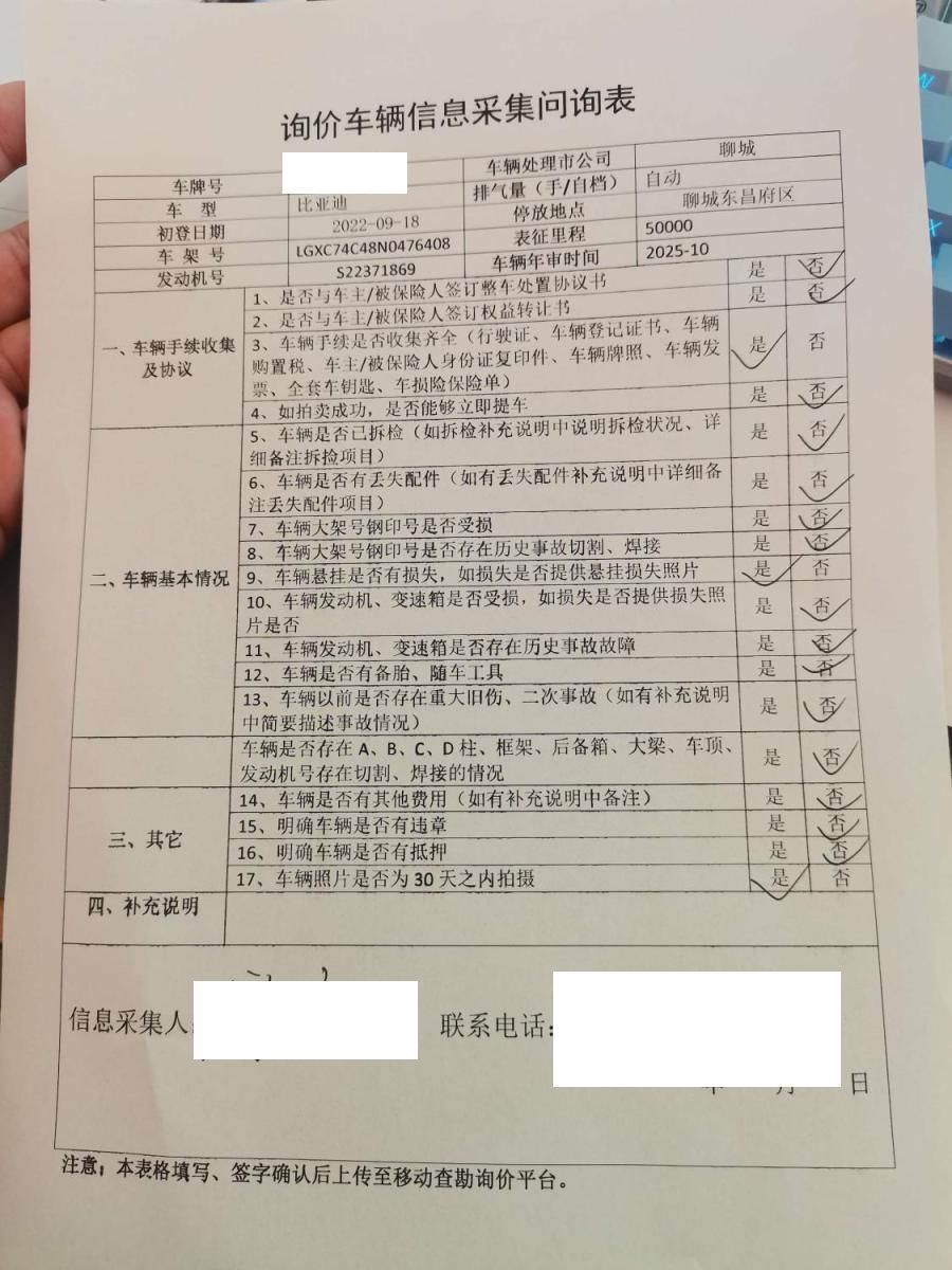 车架号是否受损 未知 使用性质 非营运
