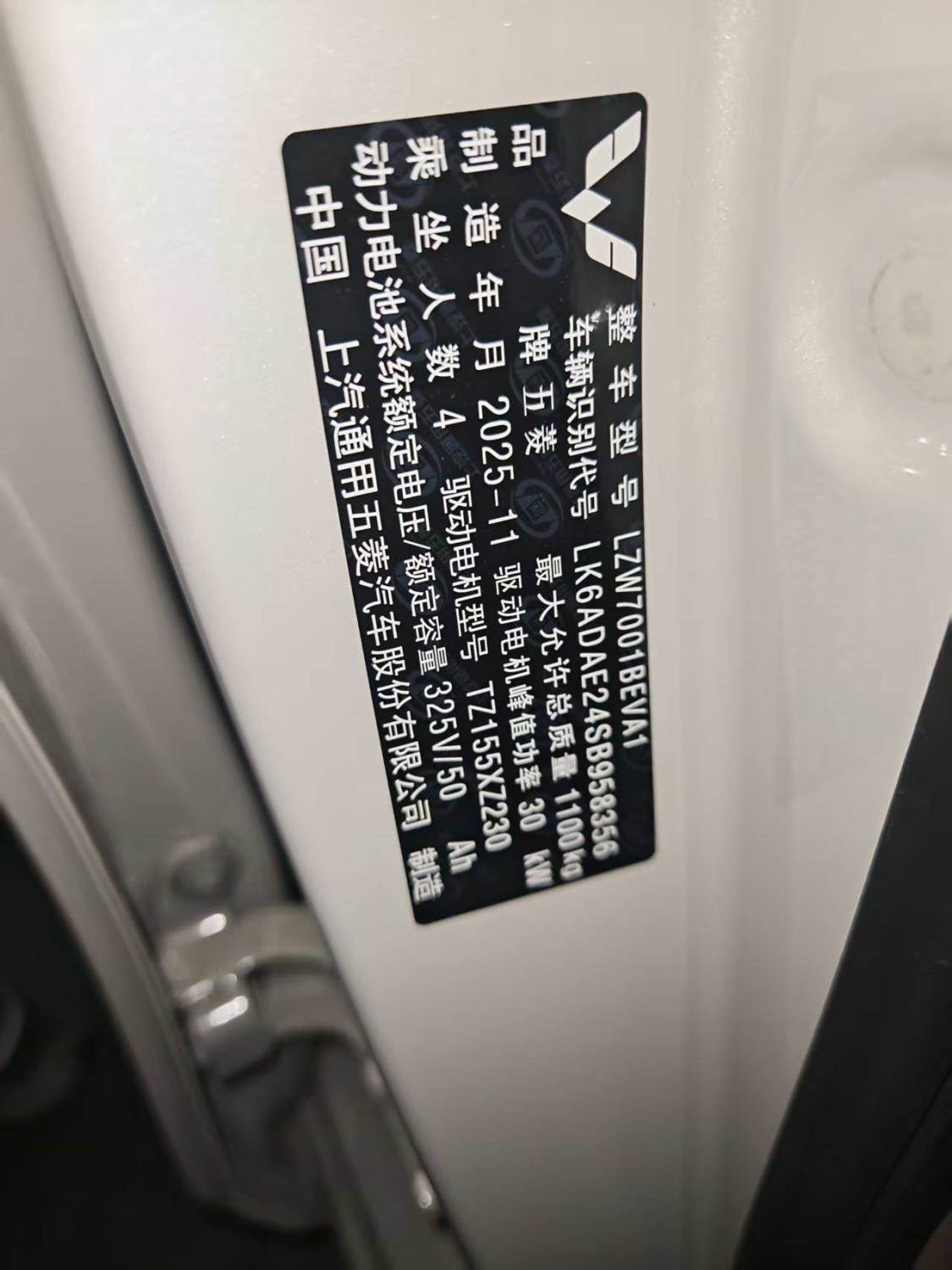 初次登记日期 2025-11-14 车辆名称 五菱汽车 宏光