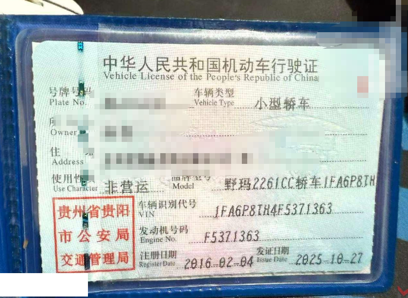 车辆归属地 贵州省贵阳市 车辆停放仓库 贵州省贵阳市