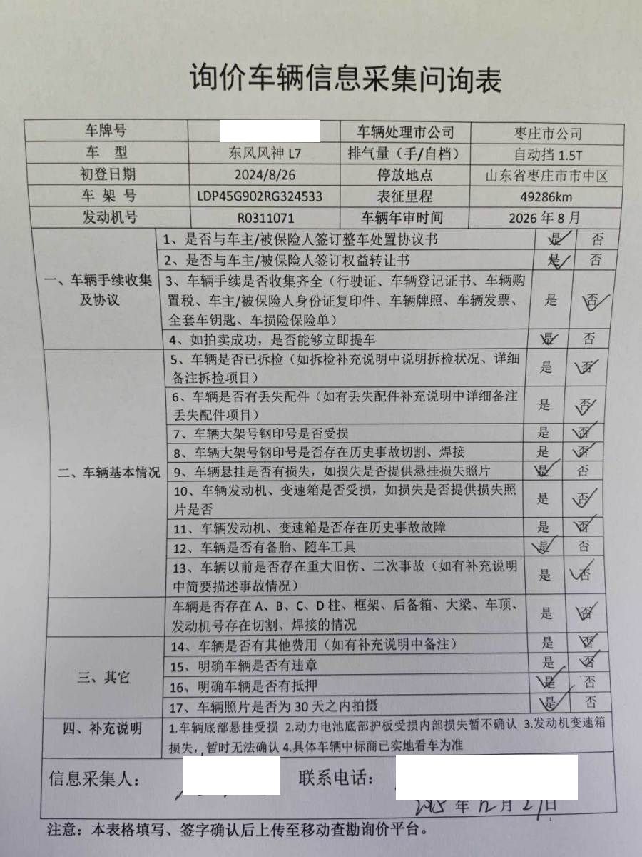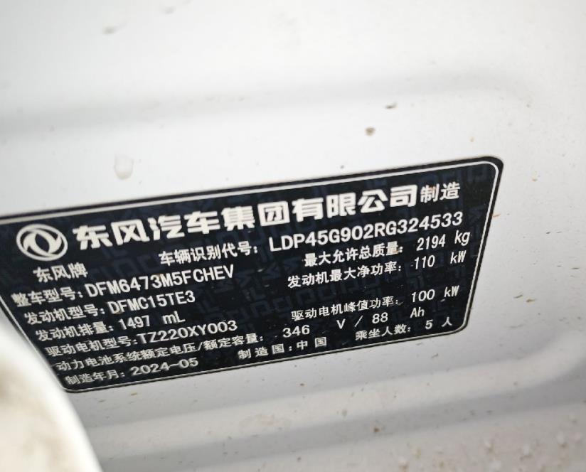 初次登记日期 2024-08-26 车辆名称 东风风神L7