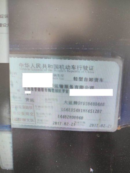 初次登记日期 2017-02-21 车辆名称 成都大运 大运自卸货车