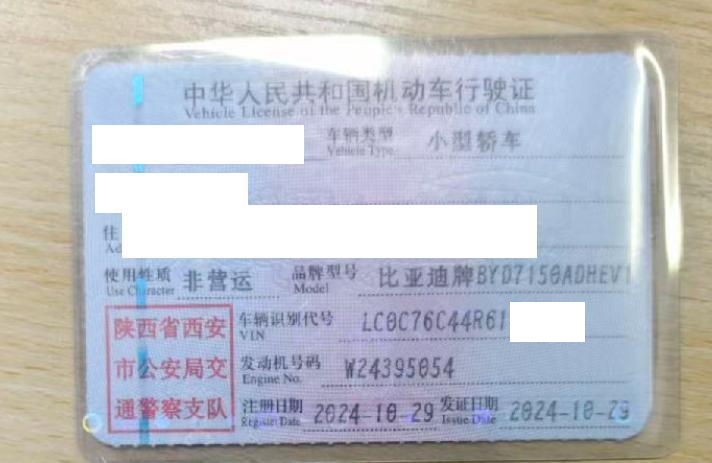 车牌号 陕****** 品牌 比亚迪