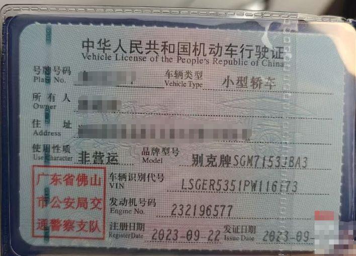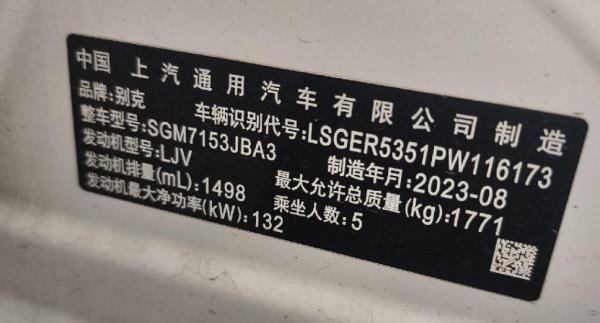 初次登记日期 2023-09-22 车辆名称 别克 威朗