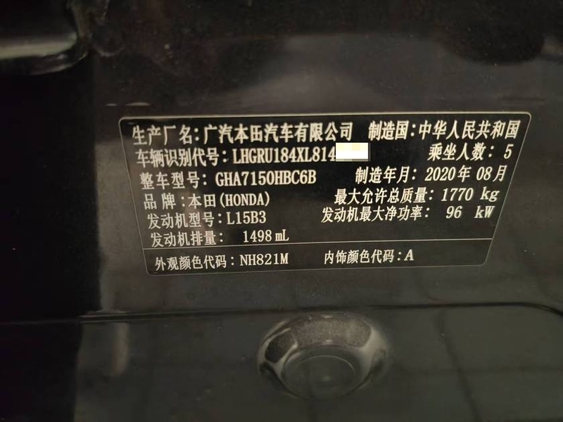 初次登记日期 2020-09-10 车辆名称 本田 缤智
