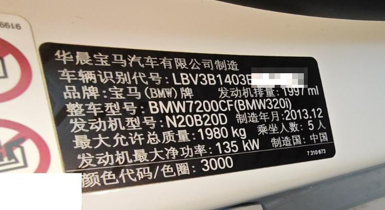 初次登记日期 2014-02-18 车辆名称 宝马3系