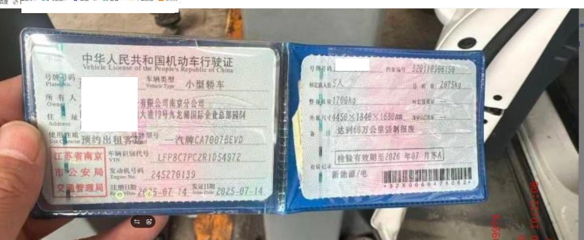 车辆归属地 江苏省南京市 车辆停放仓库 江苏省南京市南京市