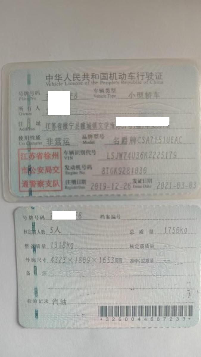 车辆归属地 江苏省徐州市 车辆停放仓库 江苏省宿迁市宿迁市