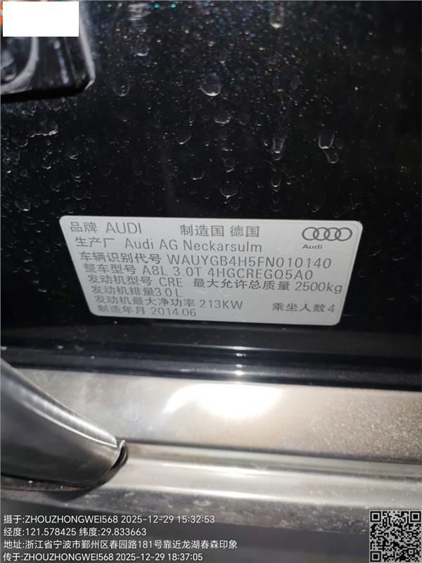 初次登记日期 2014-09-29 车辆名称 奥迪A8