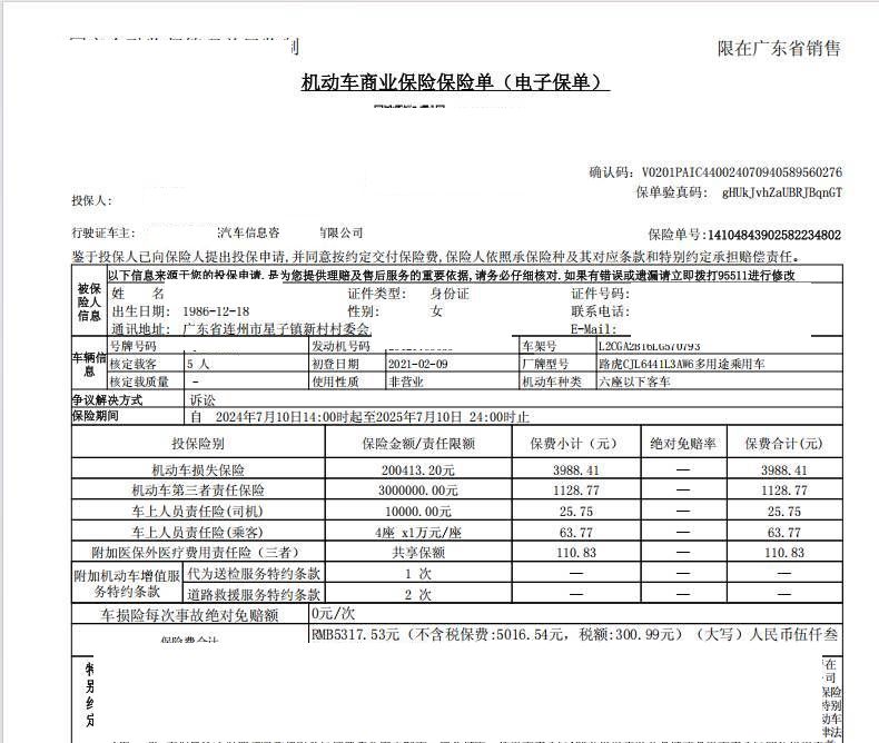 保险金额 ¥200413.2 预估维修金额