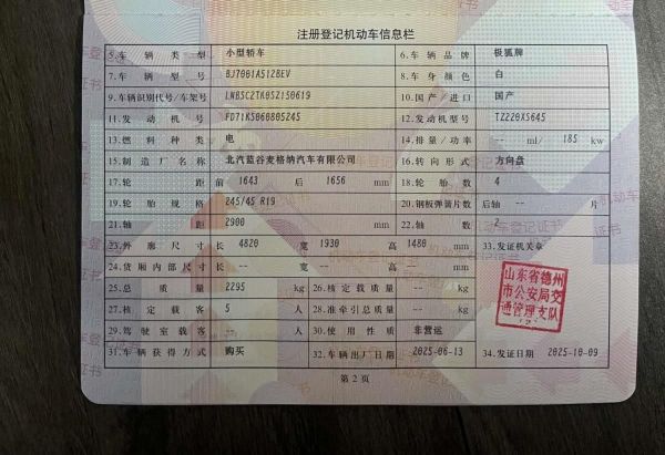 初次登记日期 2025-10-09 车辆名称 ARCFOX极狐 极狐 阿尔法