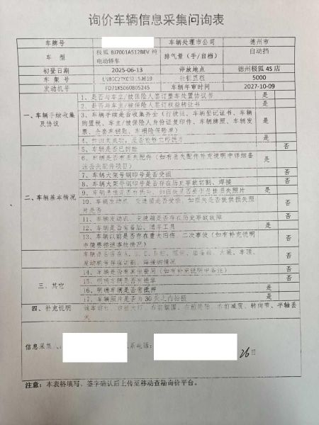 车架号是否受损 未知 使用性质 非营运