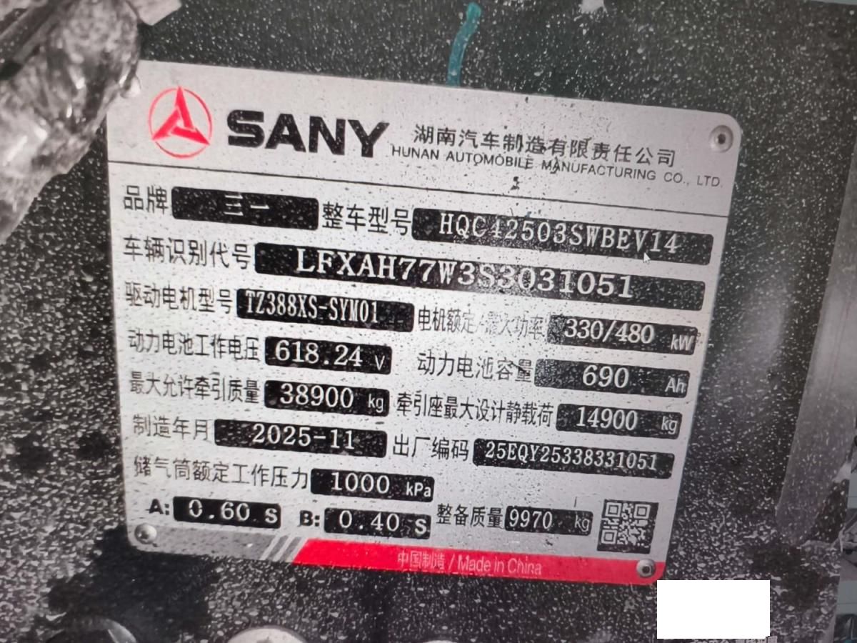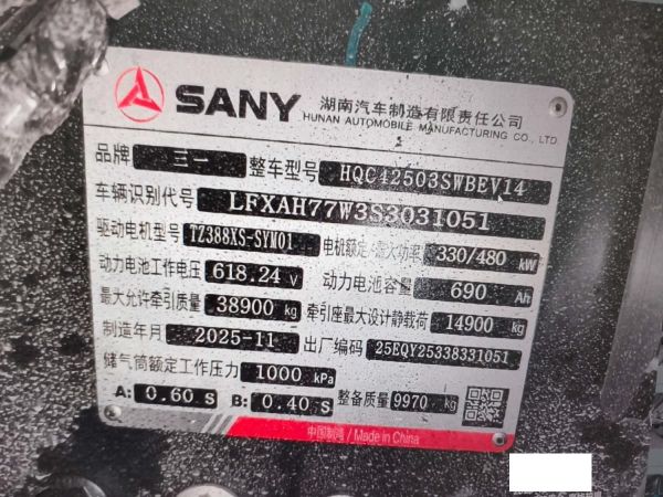 初次登记日期 2025-11-27 车辆名称 三一牌