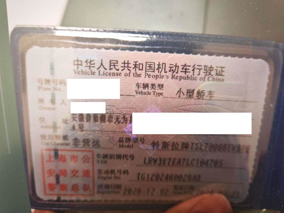 初次登记日期 2020-12-02 车辆名称 特斯拉 Model