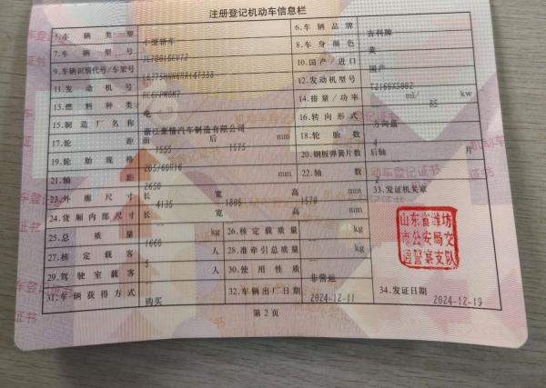 车牌号 鲁****** 品牌 吉利