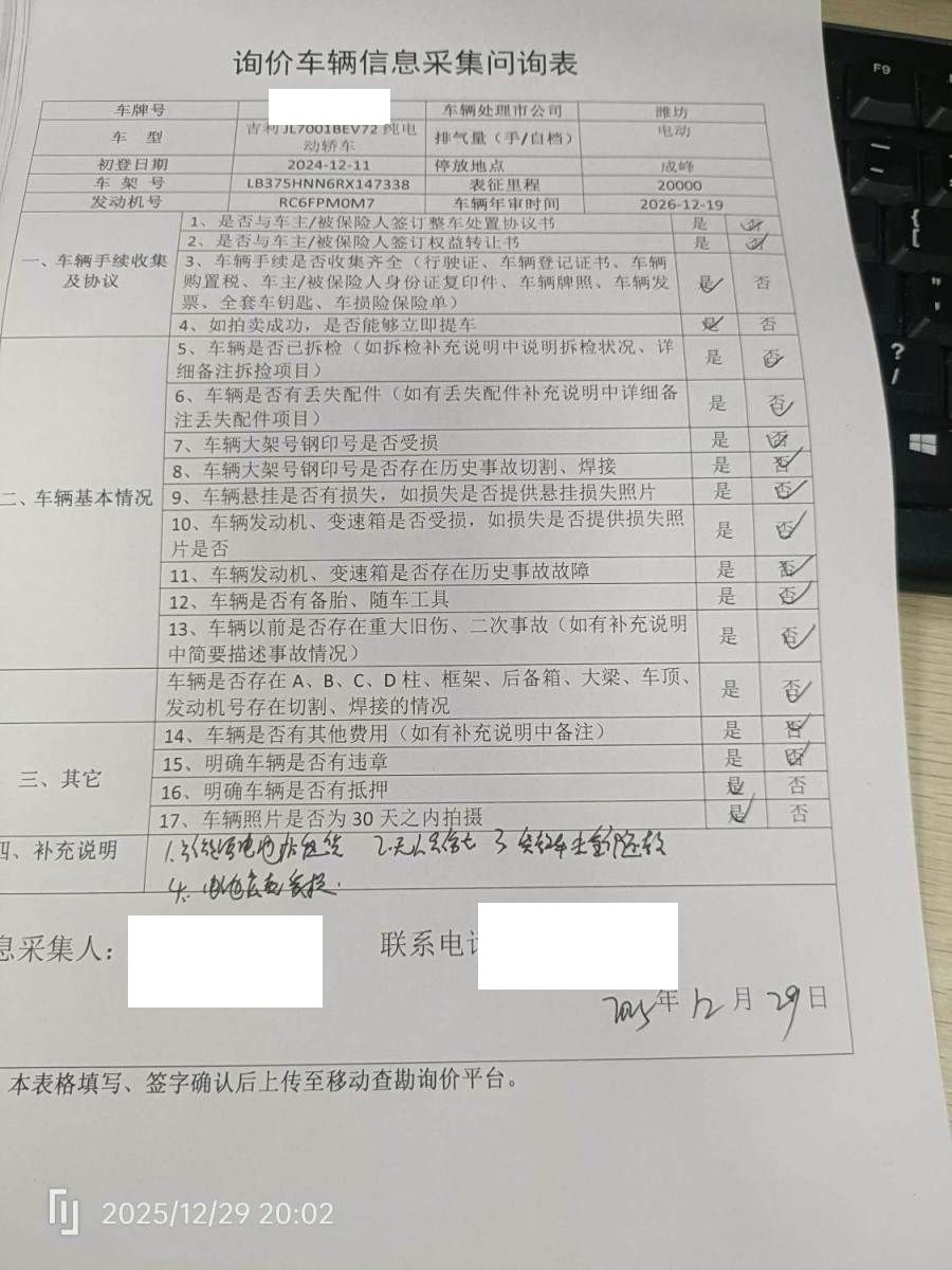 拍卖编号 N202512300233 事故类型 碰撞车