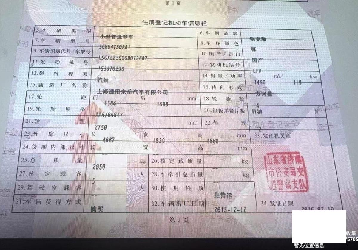 车牌号 鲁****** 品牌 别克