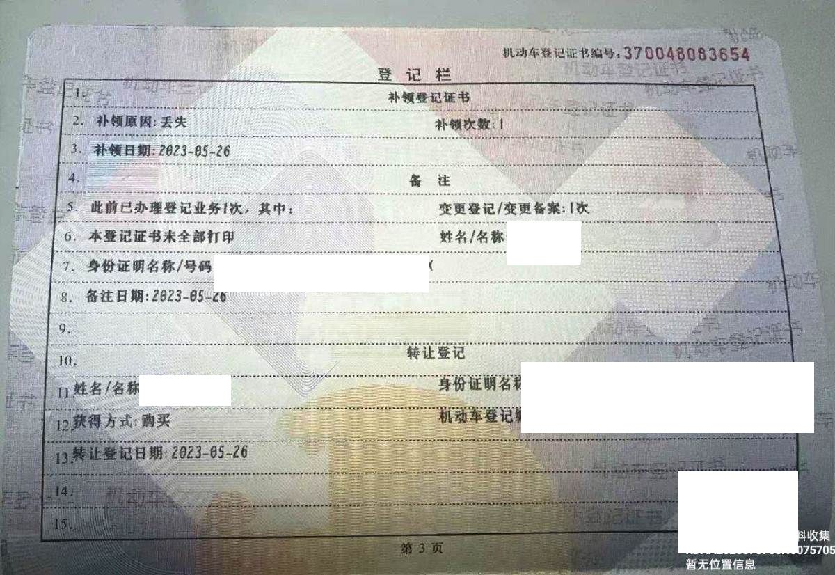 车辆归属地 山东省潍坊 车辆停放仓库 山东省诸城市