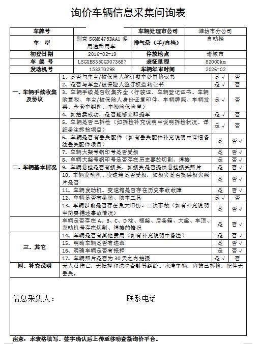 无法院查封和抵押,无纠纷,车辆已拆检,配件无丢失。静态水淹 5年以上车辆报价后不得以二次事故为由提出议价或退车弃标。