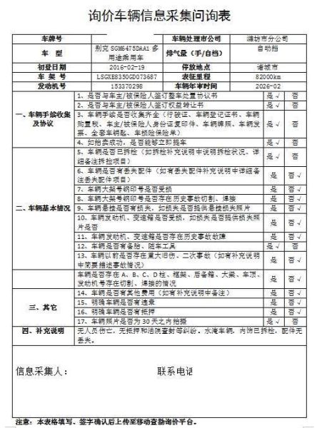 车架号是否受损 未知 使用性质 非营运
