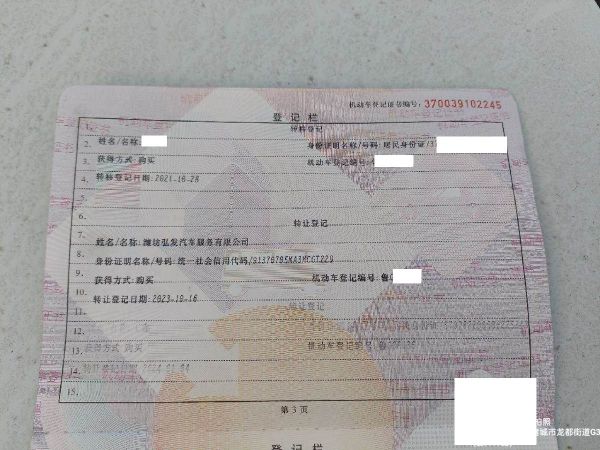 车辆归属地 山东省潍坊市 车辆停放仓库 山东省诸城市