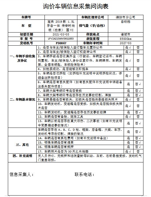 车架号是否受损 使用性质 非营运