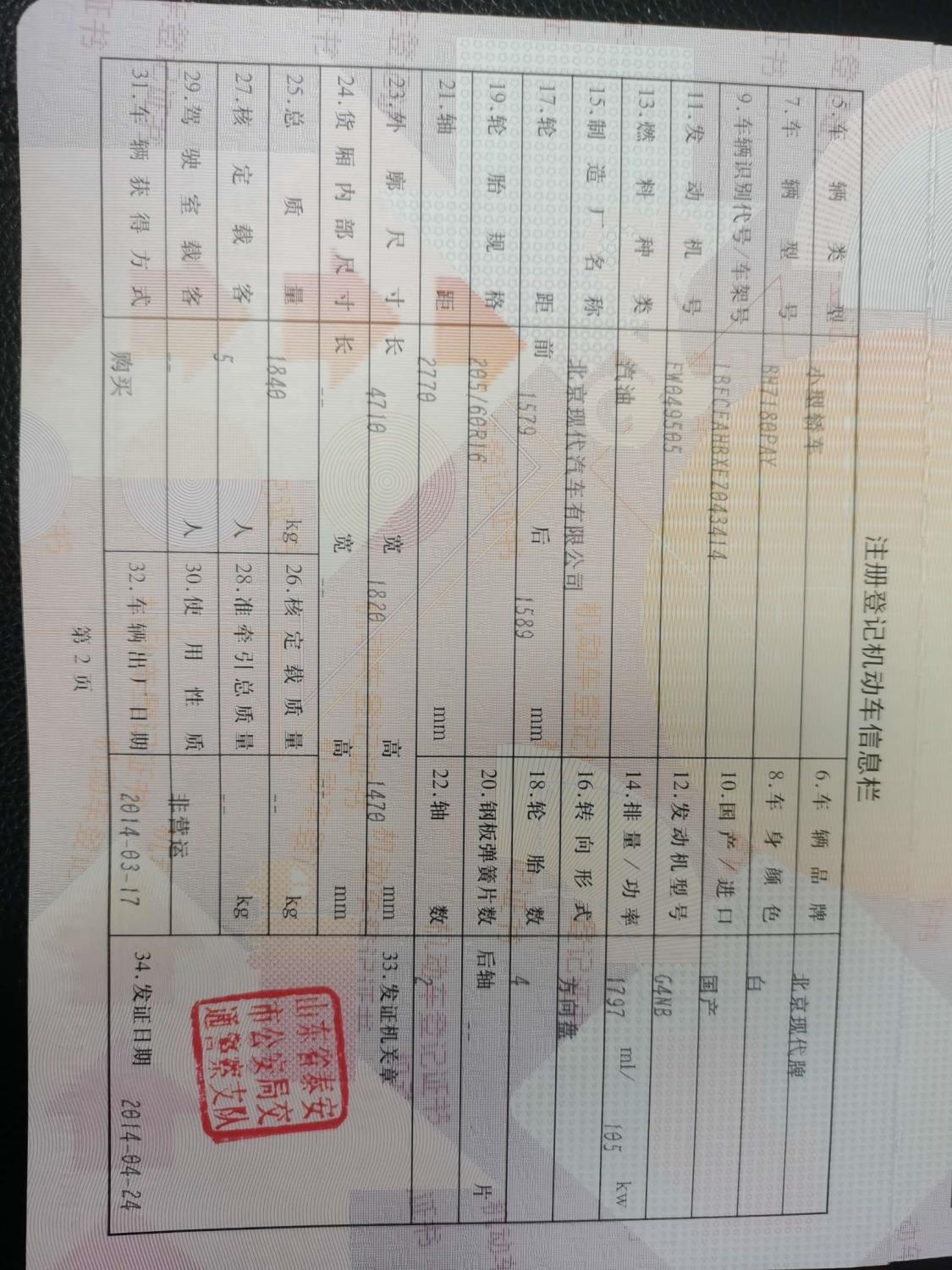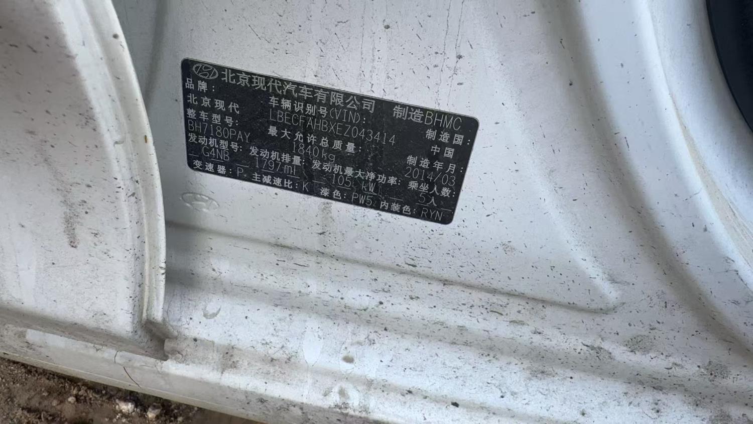 初次登记日期 2014-04-24 车辆名称 现代 名图