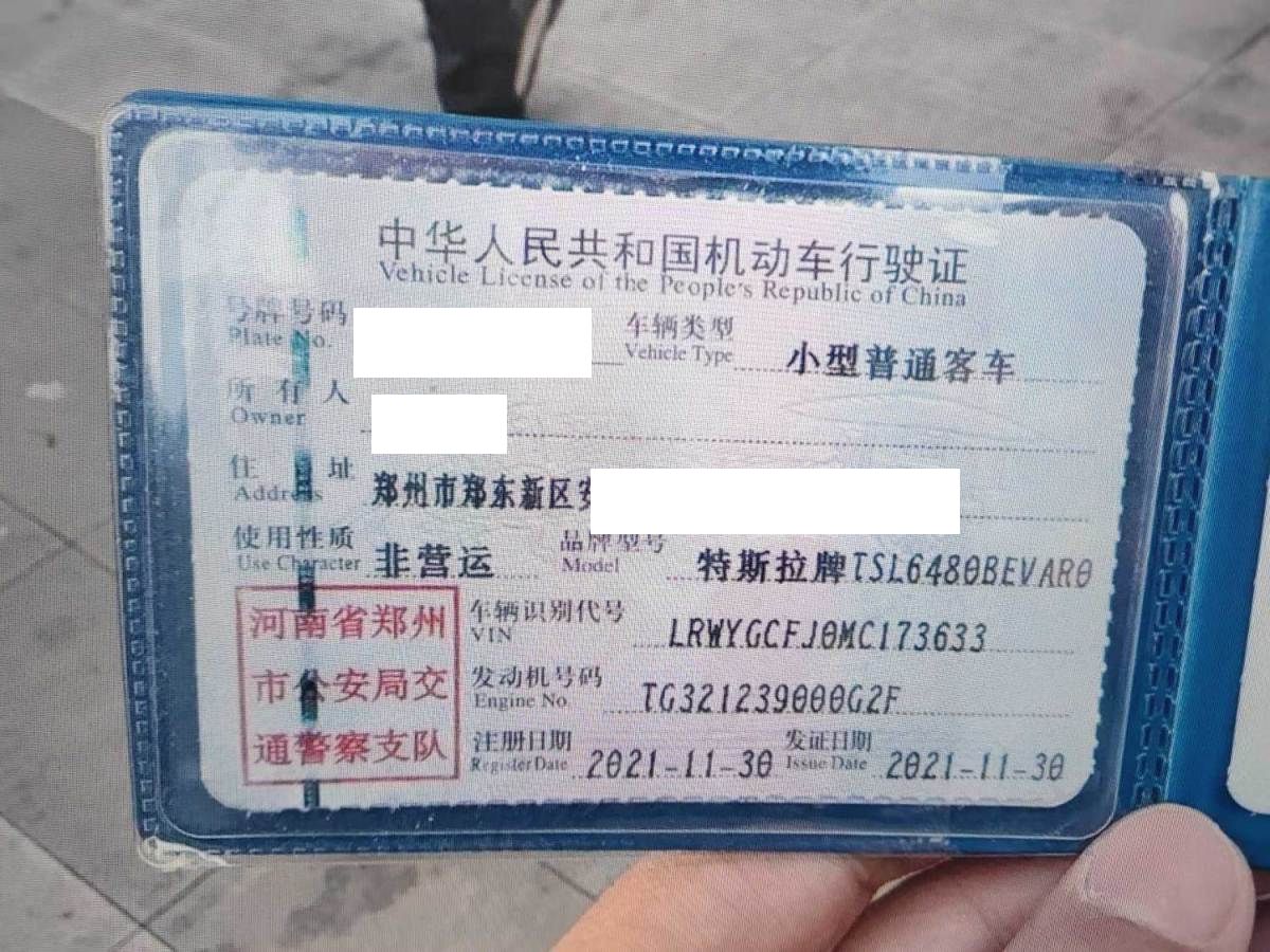车牌号 豫****** 品牌 特斯拉