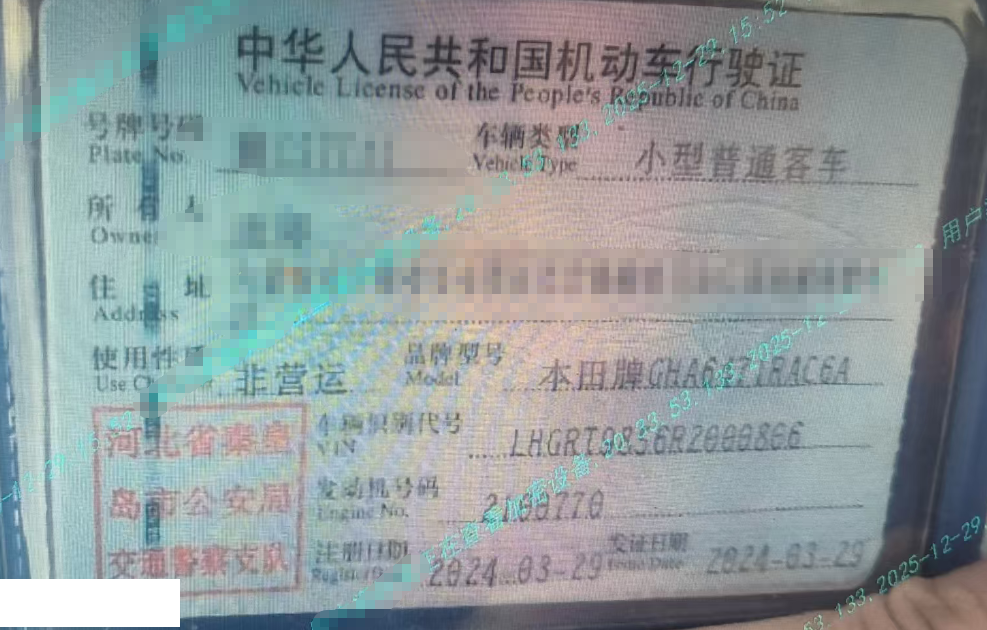车牌号 冀****** 品牌 本田