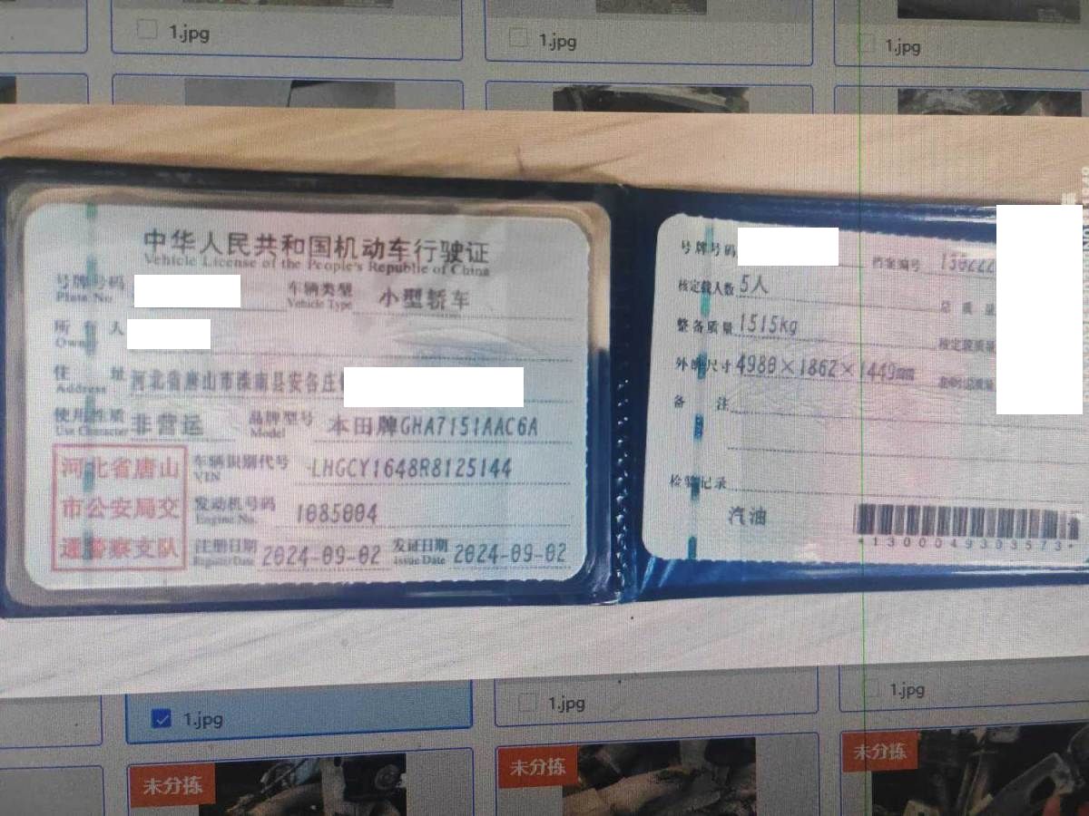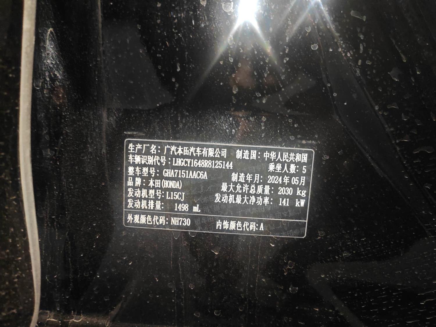 初次登记日期 2024-09-02 车辆名称 本田 雅阁
