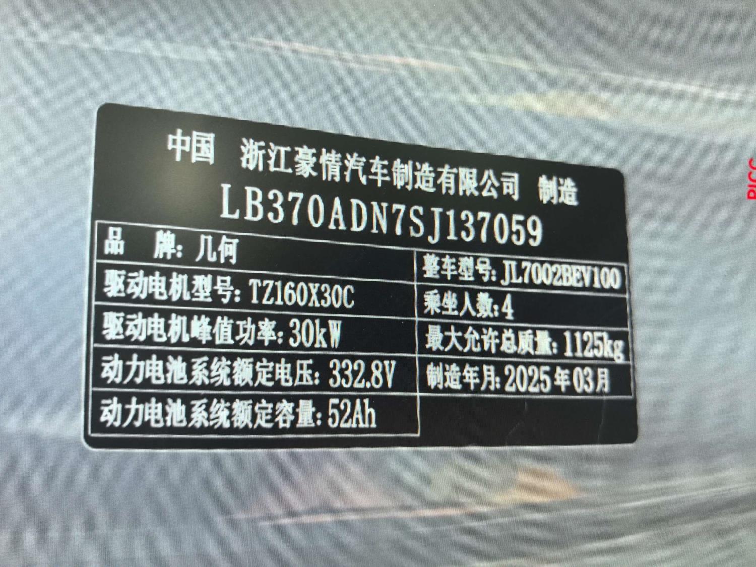 底盘号码 LB370ADN7SJ137059 变速箱类型 自动