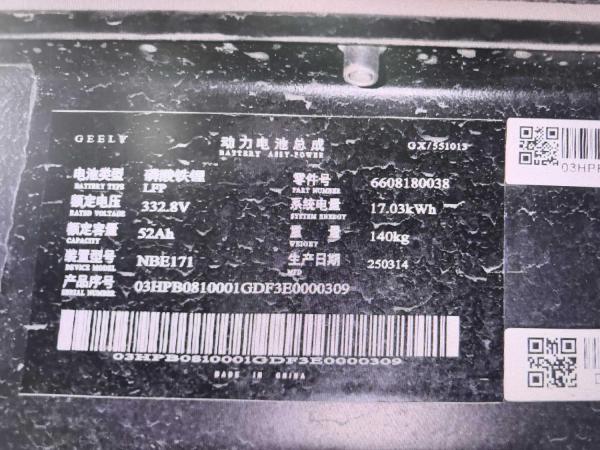 初次登记日期 2025-08-08 车辆名称 吉利银河