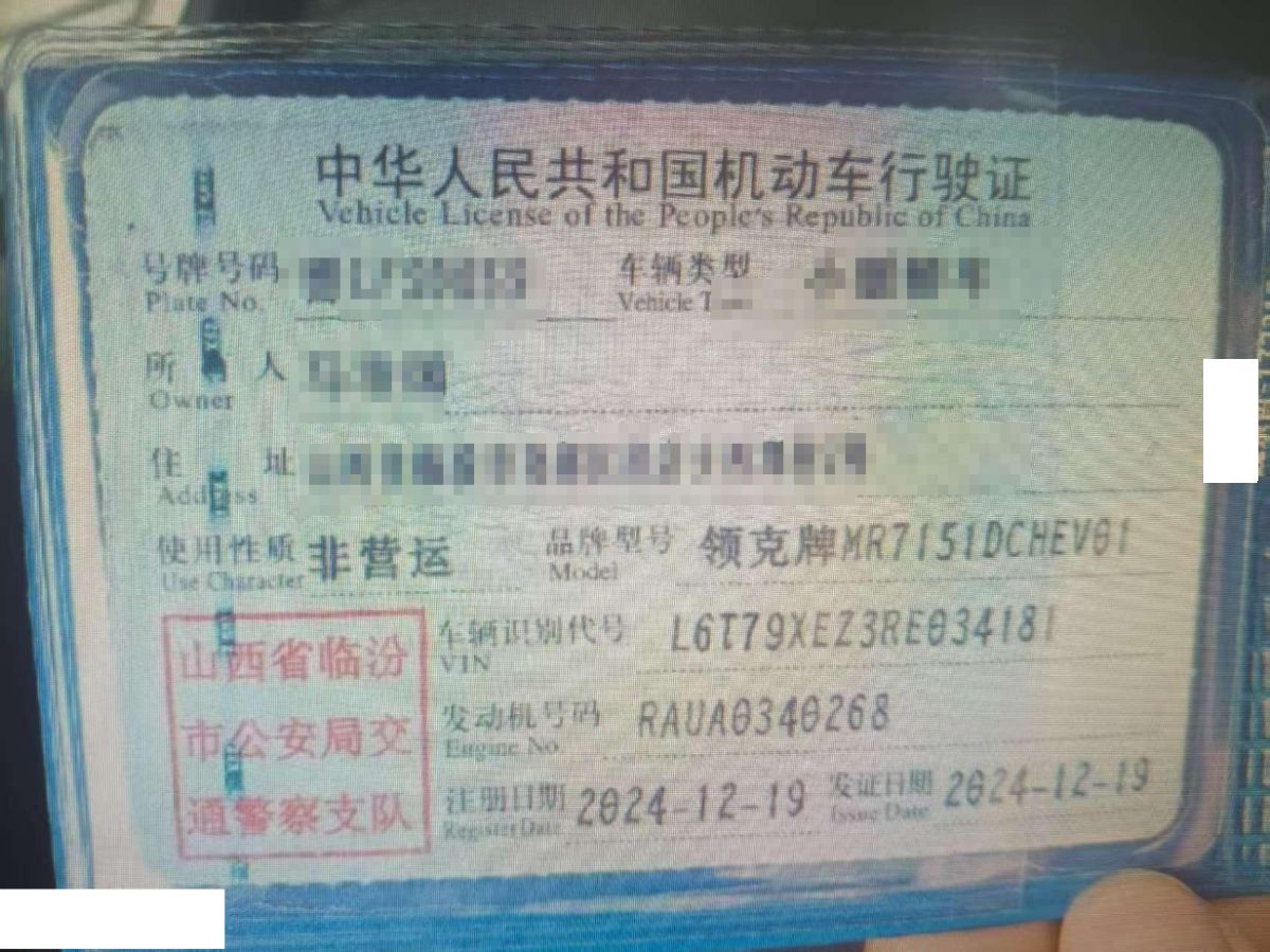 车牌号 晋****** 品牌 领克