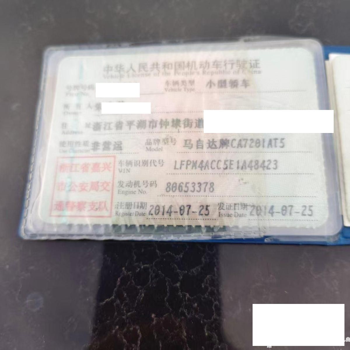 车牌号 浙****** 品牌 马自达