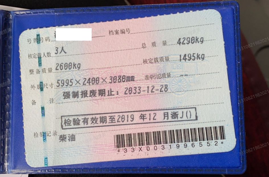 车牌号 浙****** 品牌 陕汽牌