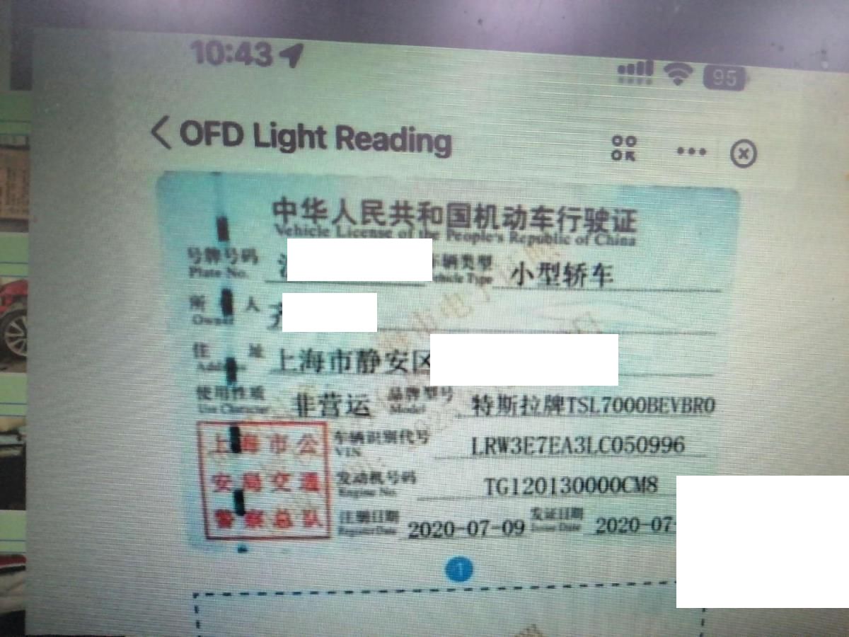 初次登记日期 2020-07-09 车辆名称 特斯拉 Model