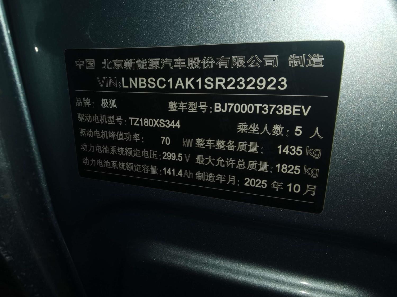 初次登记日期 2025-12-05 车辆名称 极狐牌