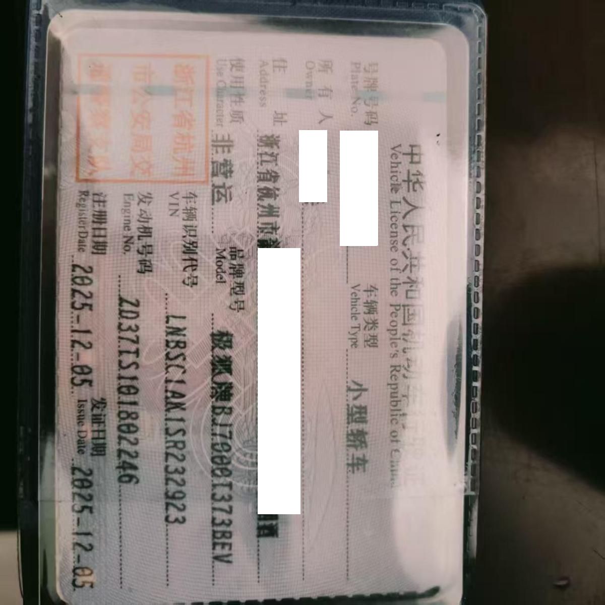 车辆归属地 浙江省杭州市 车辆停放仓库 浙江省杭州市杭州市