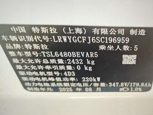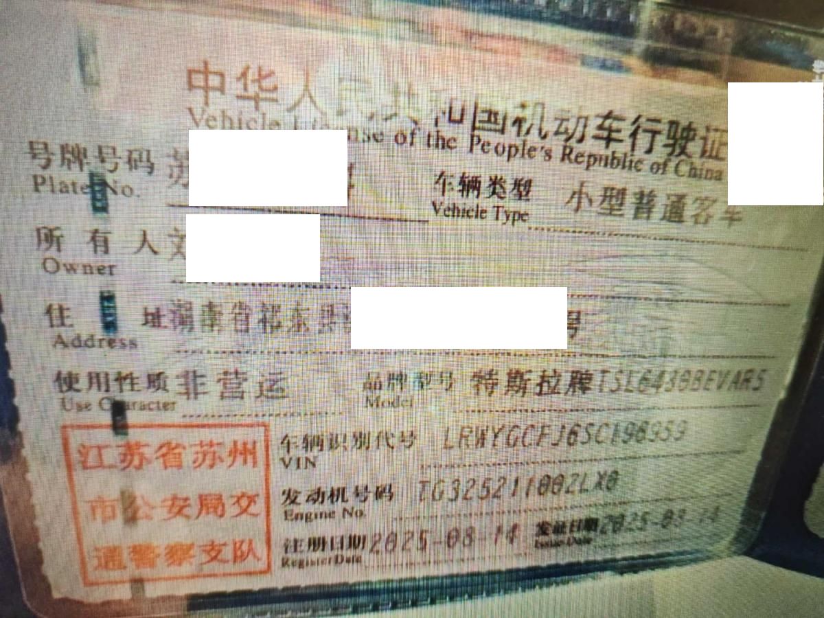 初次登记日期 2025-08-14 车辆名称 特斯拉 Model