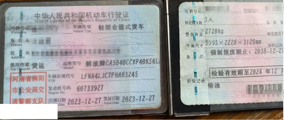 初次登记日期 2023-12-27 车辆名称 解放轻卡